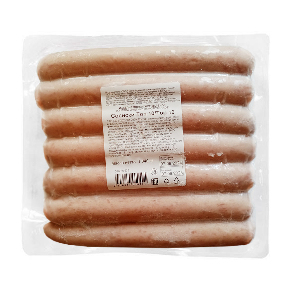 Сосиски из Мяса Индейки для Хот-Догов Топ 10/Top 10 13шт 1-1,1кг