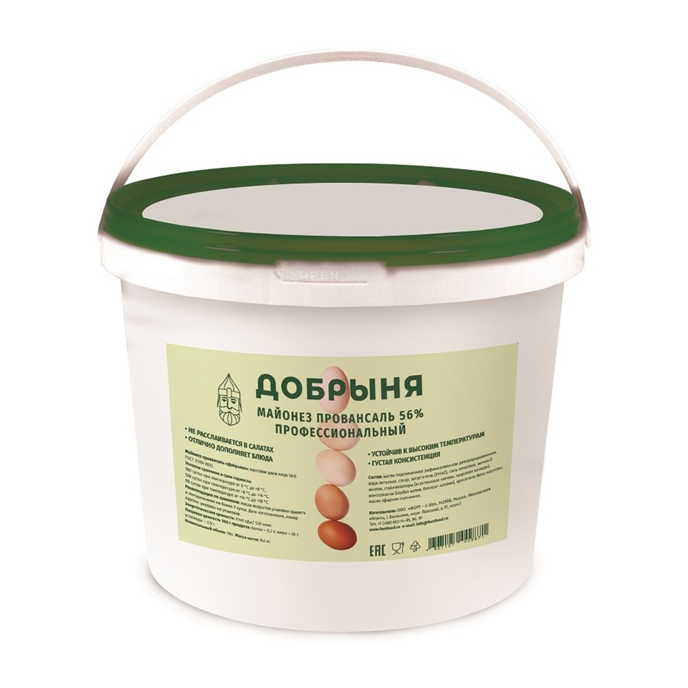 Майонез Провансаль Добрыня 56% в упаковке 10л — идеальный выбор для кафе, ресторанов и магазинов. Он подойдёт для приготовления различных салатов, закусок и маринадов, а также станет основой для соусов и дипов.