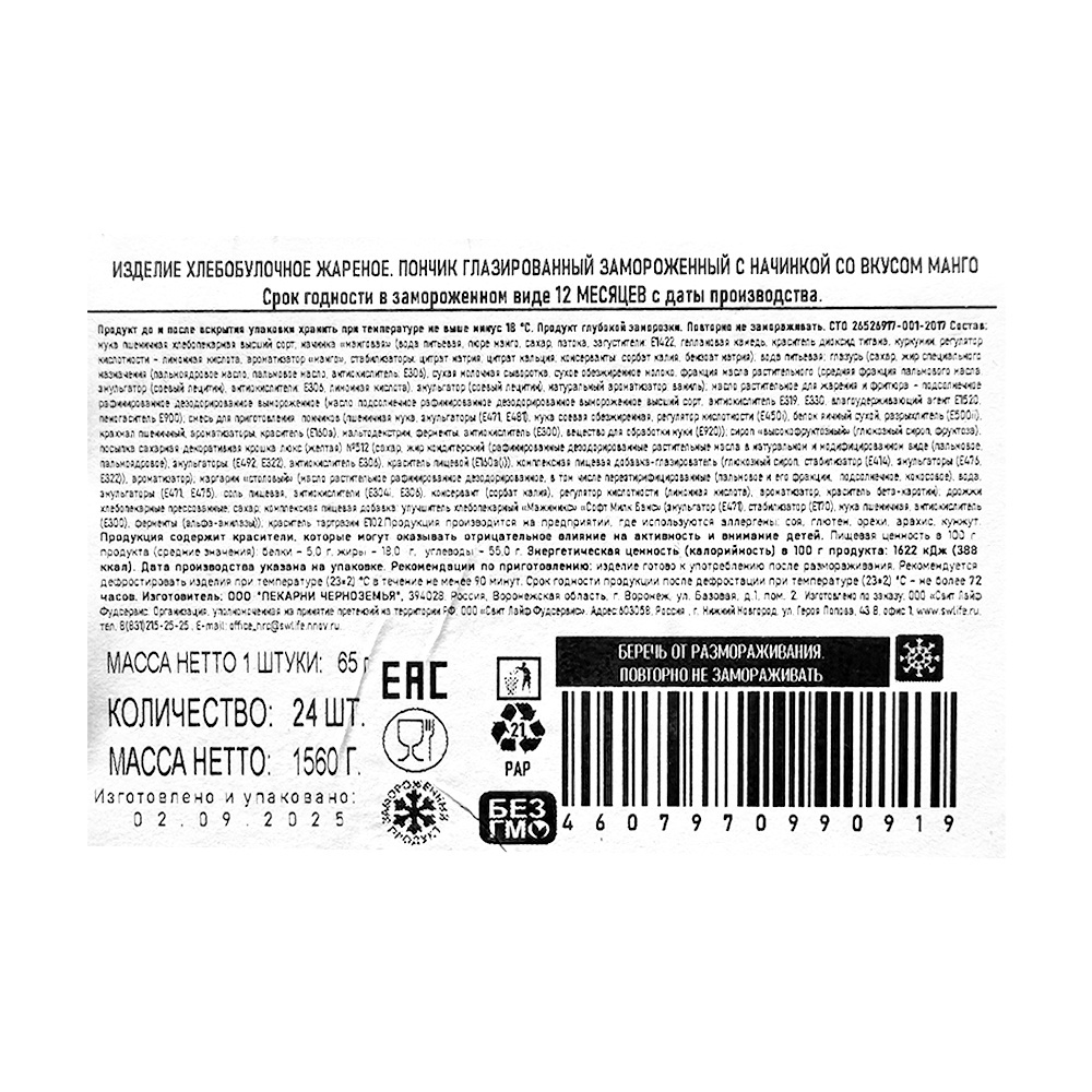 Донат Smart Chef с Начинкой Манго 65г