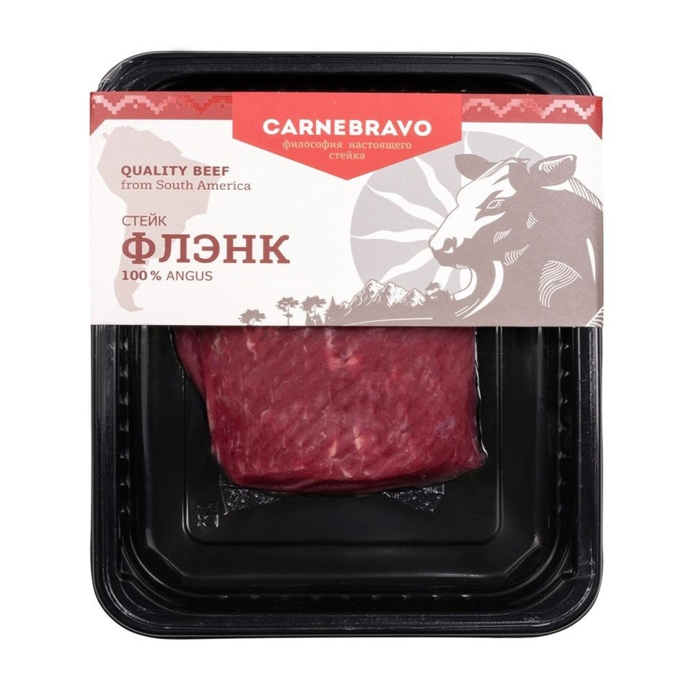 Идеален для гриля и жарки на сковороде. Стейк Флэнк от Carnebravo — отличный выбор для ароматного блюда. Благодаря мраморности мяса он получается нежным и сочным, что делает его украшением стола. Подходит для приготовления в домашних условиях и на природе.