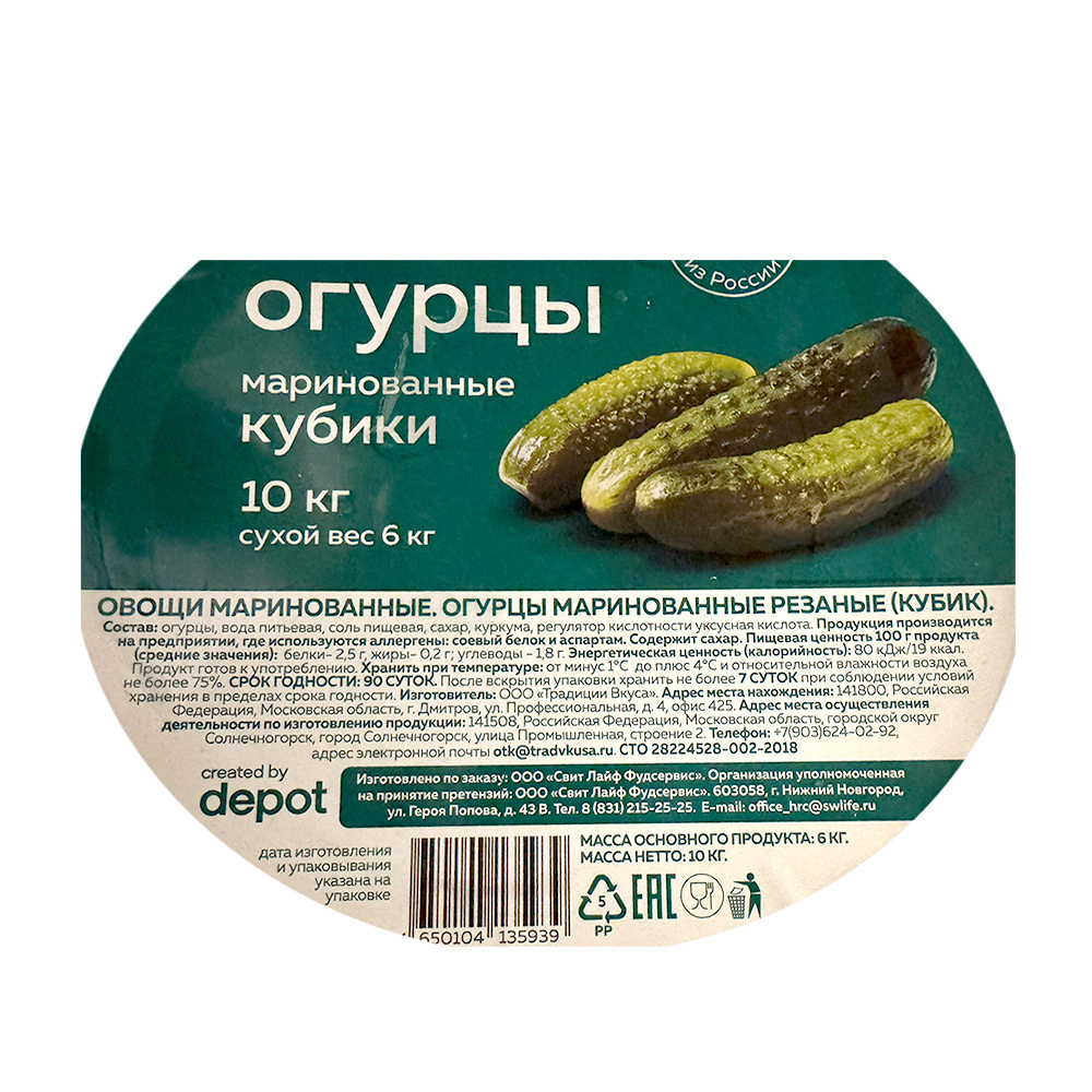 Огурцы Smart Chef Маринованные Кубики 10кг Сухой Вес 6кг