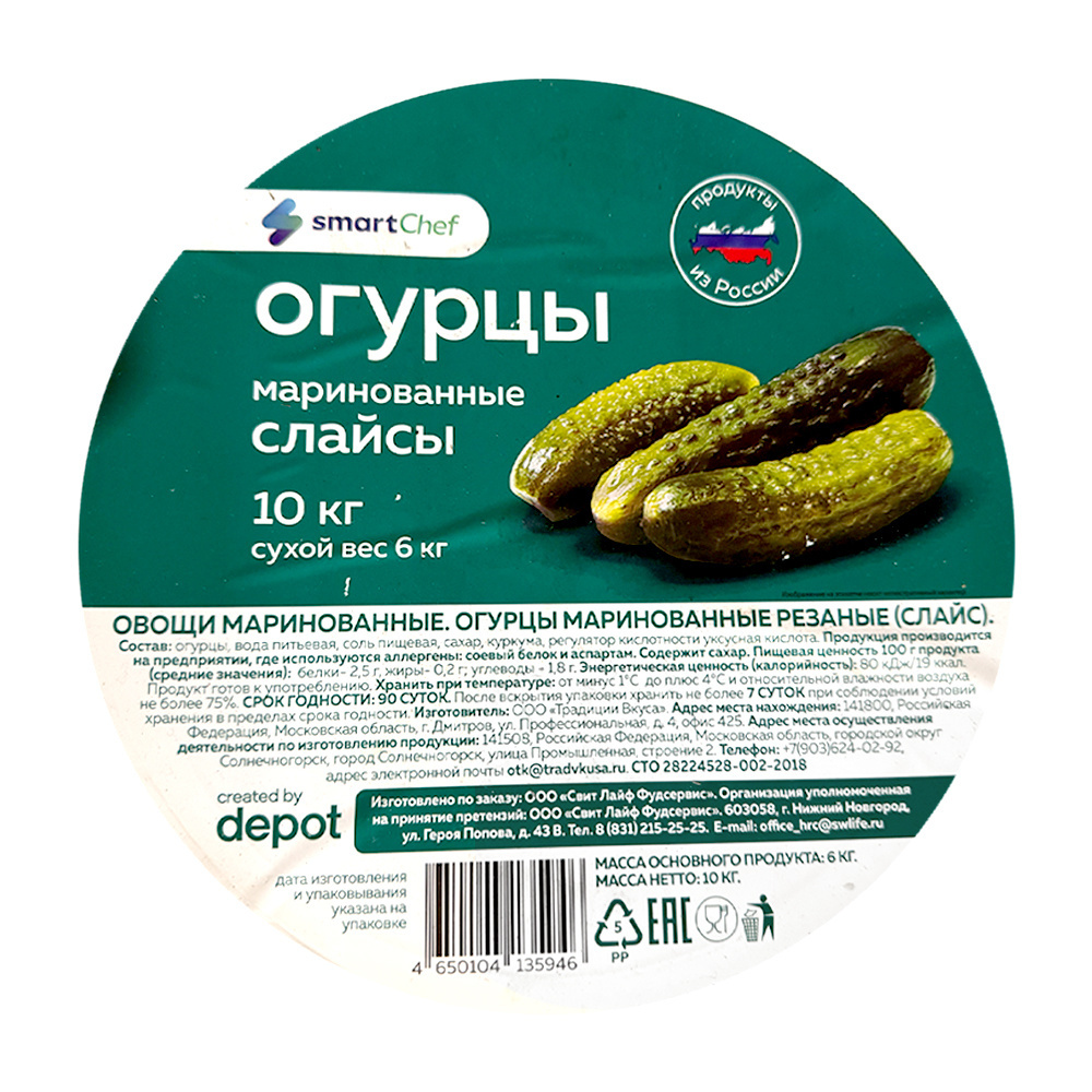 Огурцы Smart Chef Маринованные Слайсы 10кг Сухой Вес 6кг