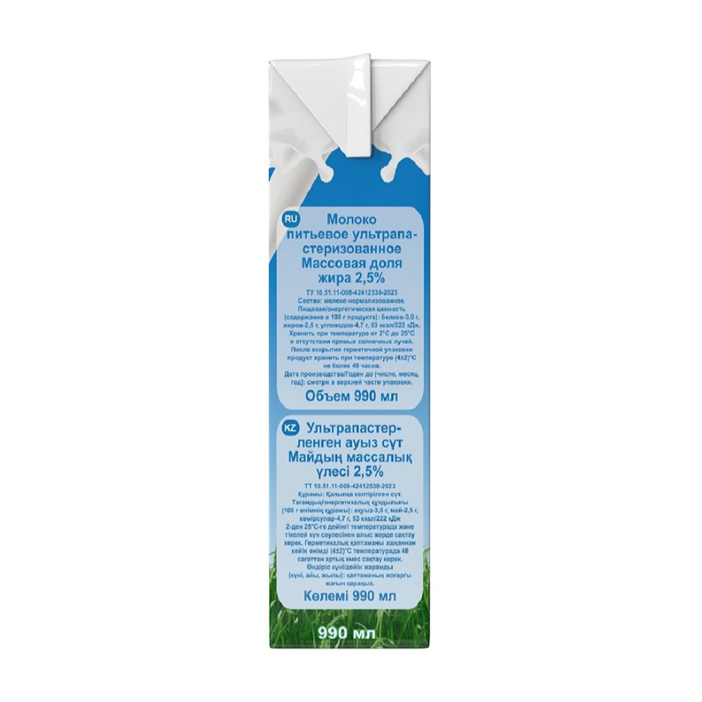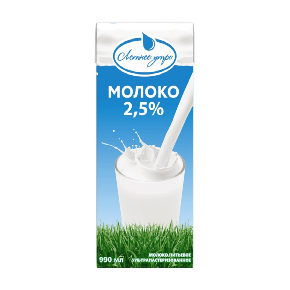Натуральное молоко для завтрака или приготовления блюд. Попробуйте ультрапастеризованное молоко Летнее утро жирностью 2,5% в удобной упаковке объёмом 990мл. Оно отлично подойдёт для утреннего кофе, приготовления каш, соусов и десертов.