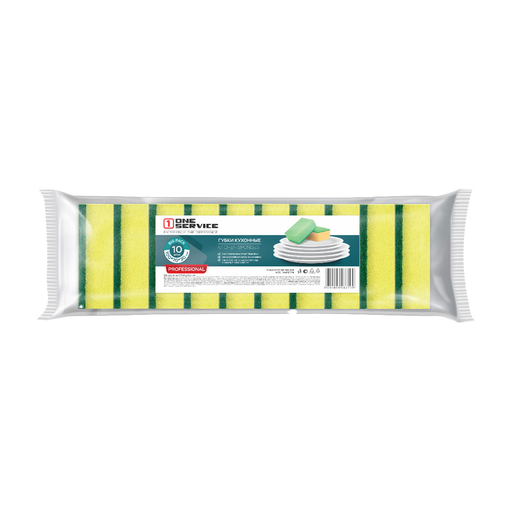 Нужны надёжные и удобные в использовании губки для мытья посуды? Тогда вам подойдут кухонные губки One Service. Они эффективно справляются с загрязнениями, не оставляют царапин на поверхности посуды. В упаковке 10 штук — этого хватит надолго!