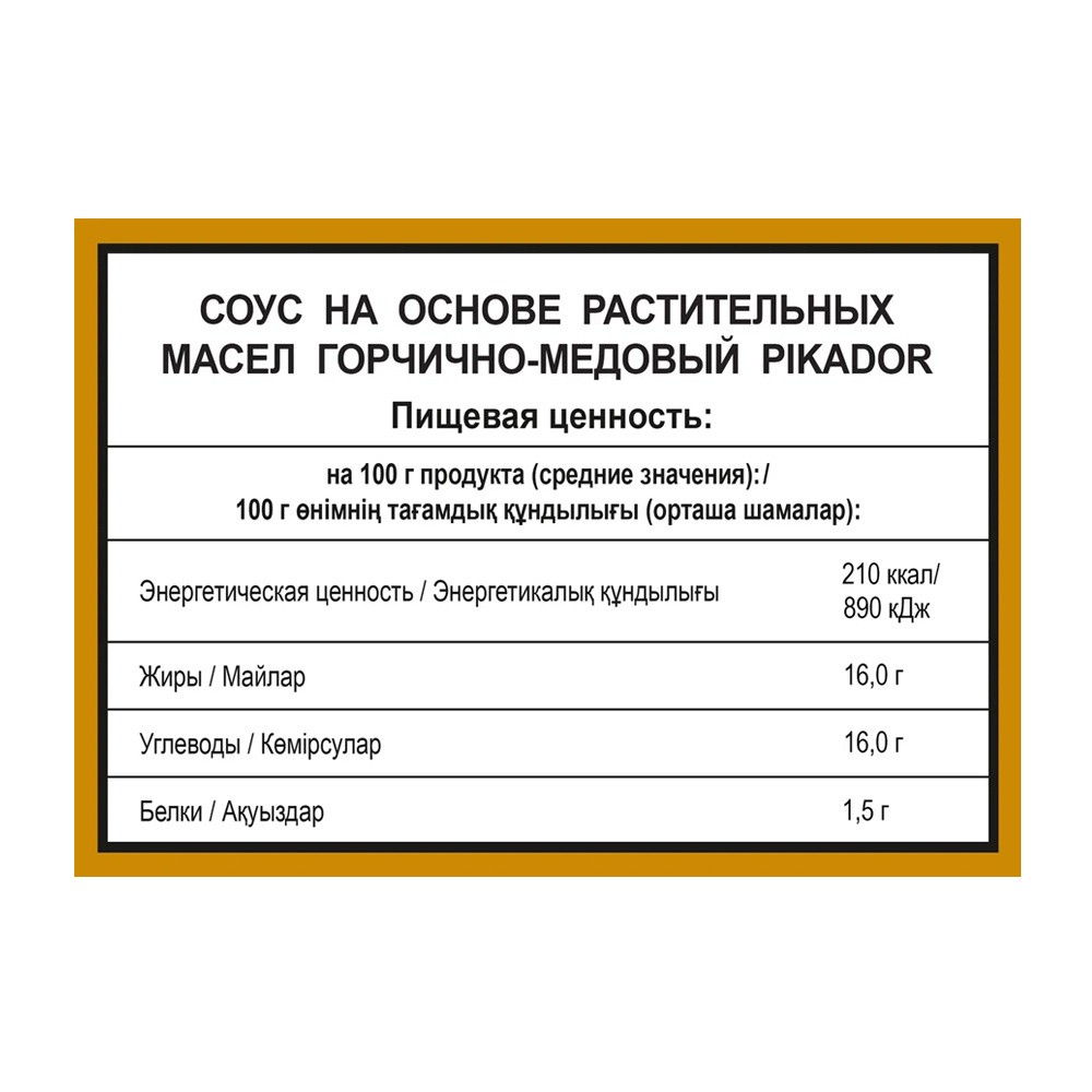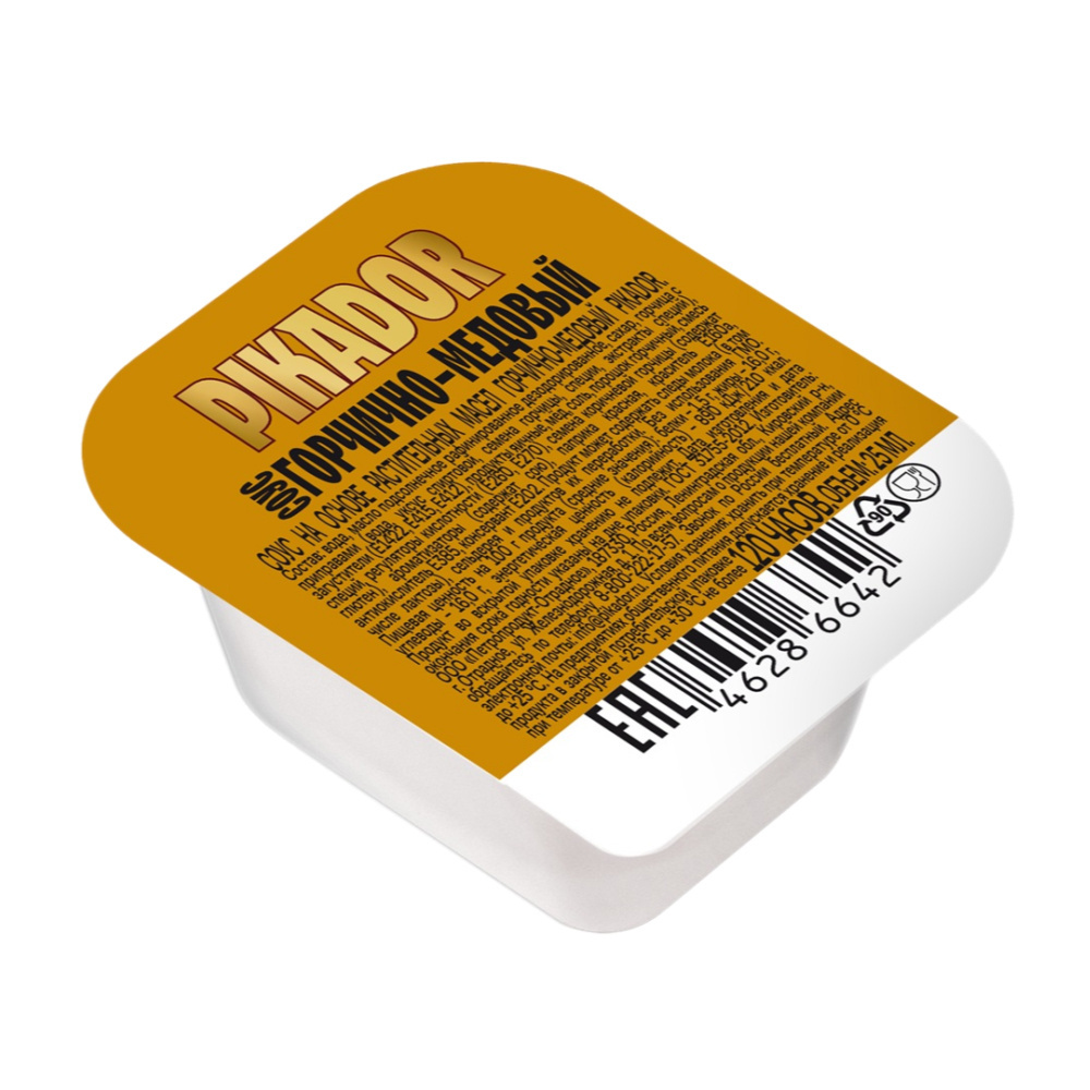 Ищете идеальный соус для мясных и рыбных блюд? Попробуйте горчично-медовый соус Pikador! Он добавит пикантности и сладковатого аромата. Удобный порционный формат 125 штук по 25 мл позволяет брать соус с собой или использовать для небольших порций.