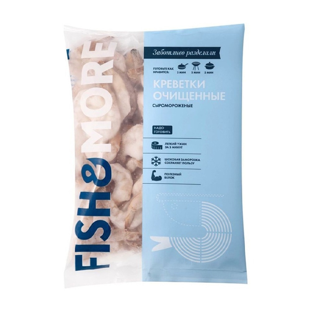 Креветки Ваннамей Fish&More Очищенные с Хвостом с/м Индия 26/30 930г