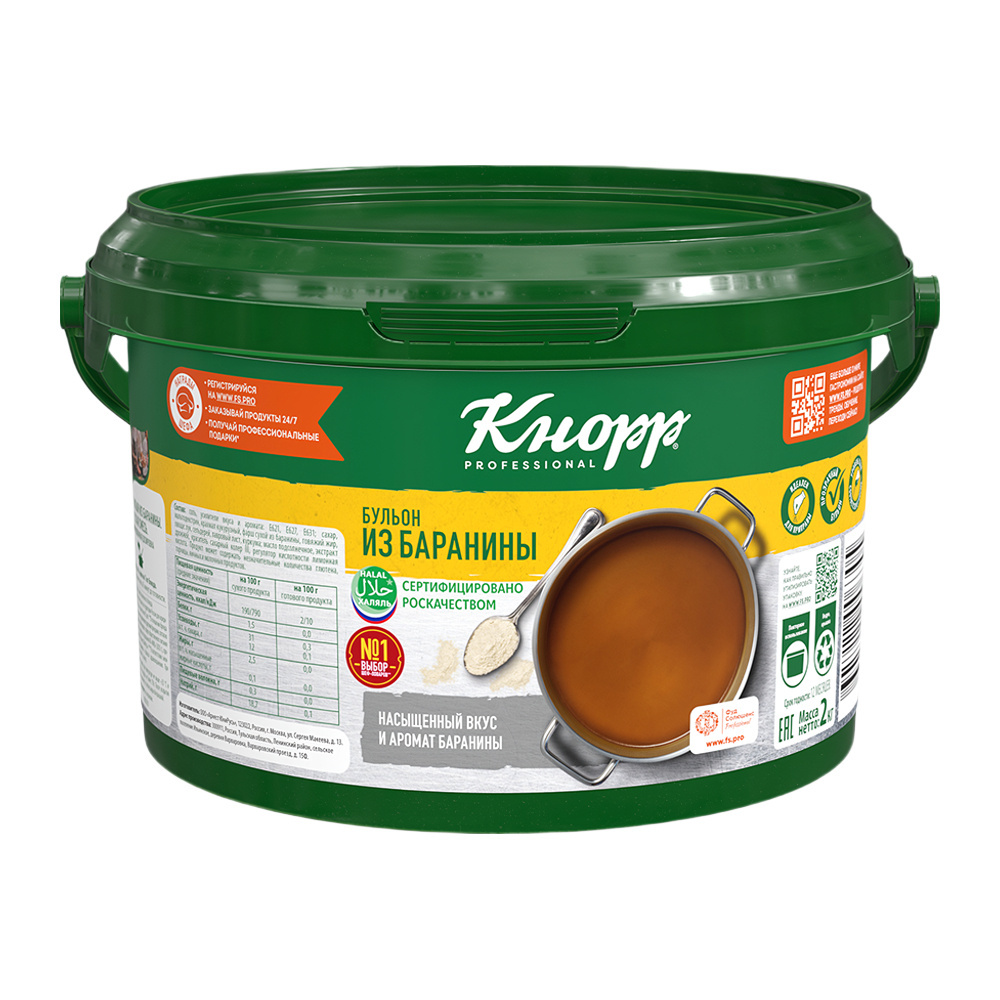 Бульон из баранины Кнорр — для тех, кто ценит насыщенный вкус и аромат. Идеален для приготовления традиционных и новых блюд. Добавляет глубины вкусу супов, соусов и жаркого. Подходит для быстрого приготовления обедов и ужинов. Удобная упаковка 2кг — отличный выбор для большой кухни.
