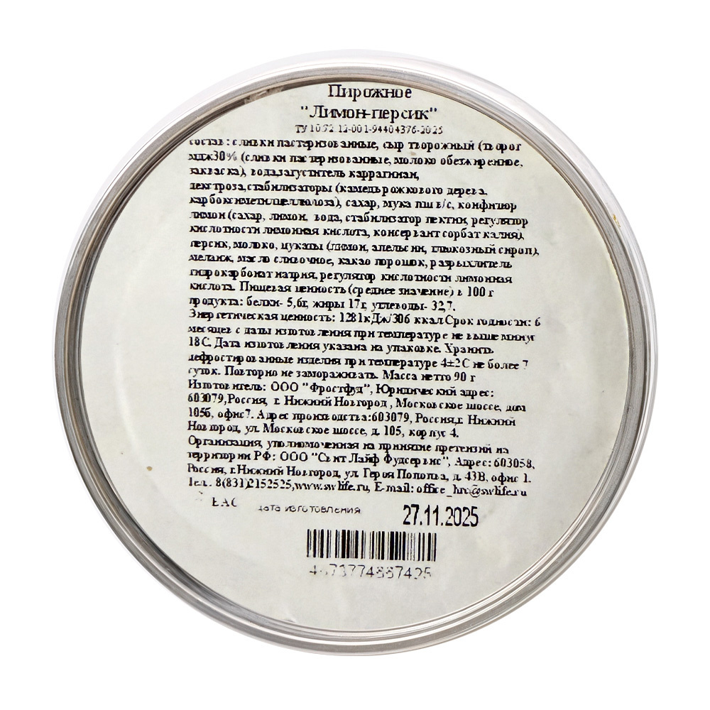 Пирожное Smart chef Лимон-персик — идеальный выбор для любителей лёгких десертов. Воздушная текстура и гармоничное сочетание вкусов лимона и персика создают освежающий вкус. Подходит для перекуса, десерта или дополнения к чашечке кофе. Отлично подойдёт для чаепития или лёгкого угощения в течение дня.