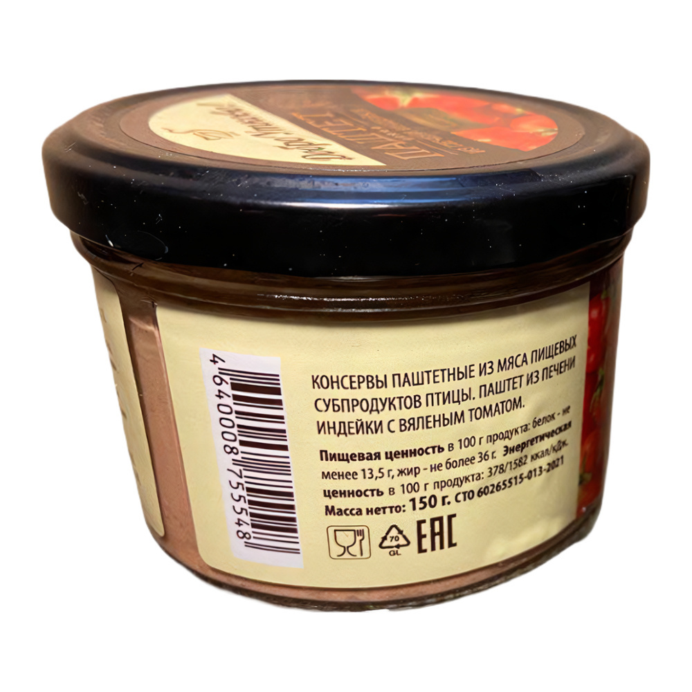Нежный паштет из печени индейки с вяленым томатом — отличный выбор для ценителей мясных деликатесов. Обладает насыщенным вкусом и ароматом. Прекрасно подходит для приготовления бутербродов, закусок и салатов. Можно использовать как начинку для выпечки. Порадует вас и ваших гостей своим изысканным вкусом.