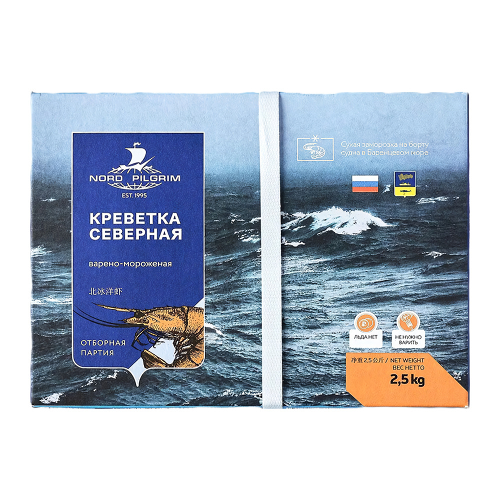 Креветки Северные Nord Pilgrim Варено-Мороженые 90+ 2,5кг