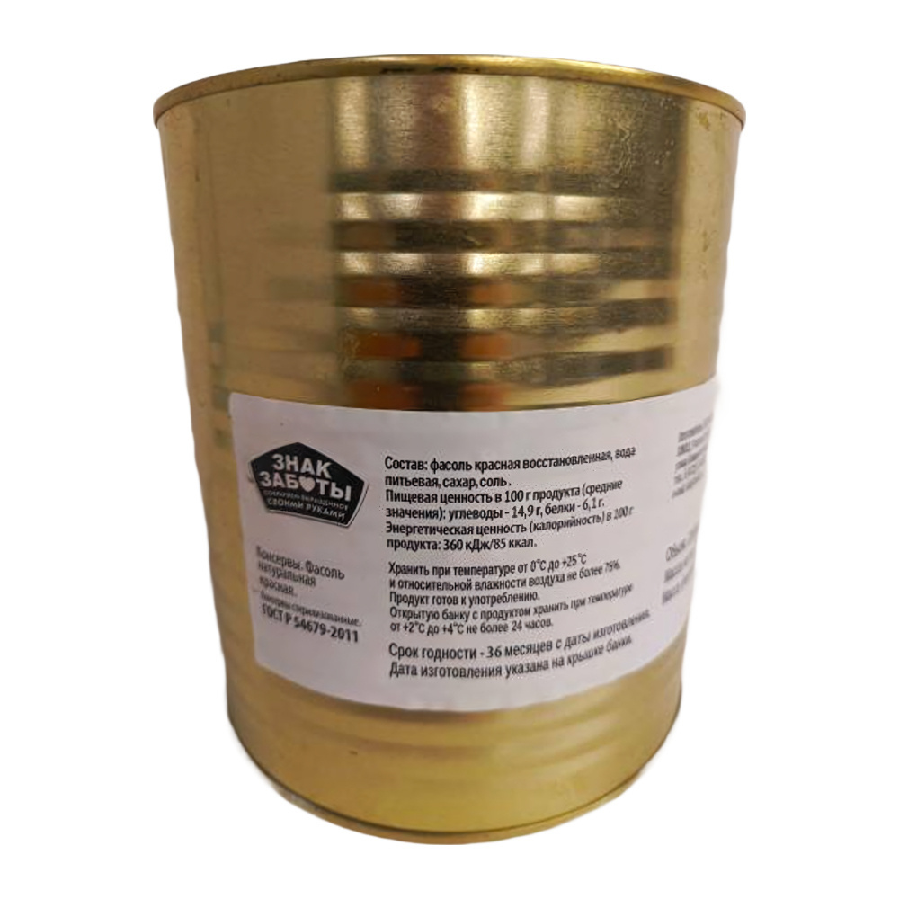 Фасоль Красная Знак Заботы Натуральная Высший Сорт 3,1л Сухой Вес 1,622кг ж/б