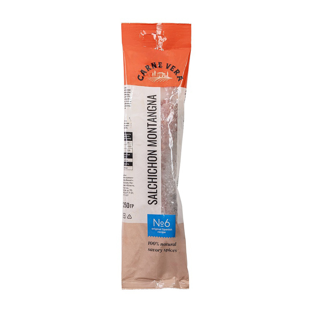 Сыровяленая колбаса Carne Vera Сальчичон Монтанья — идеальный выбор для ценителей мясных деликатесов. Вес продукта — 250г. Обладает насыщенным вкусом и плотной текстурой. Прекрасно подходит для приготовления закусок, салатов и гастрономических композиций. Можно использовать для украшения праздничного стола или разнообразить повседневное меню.