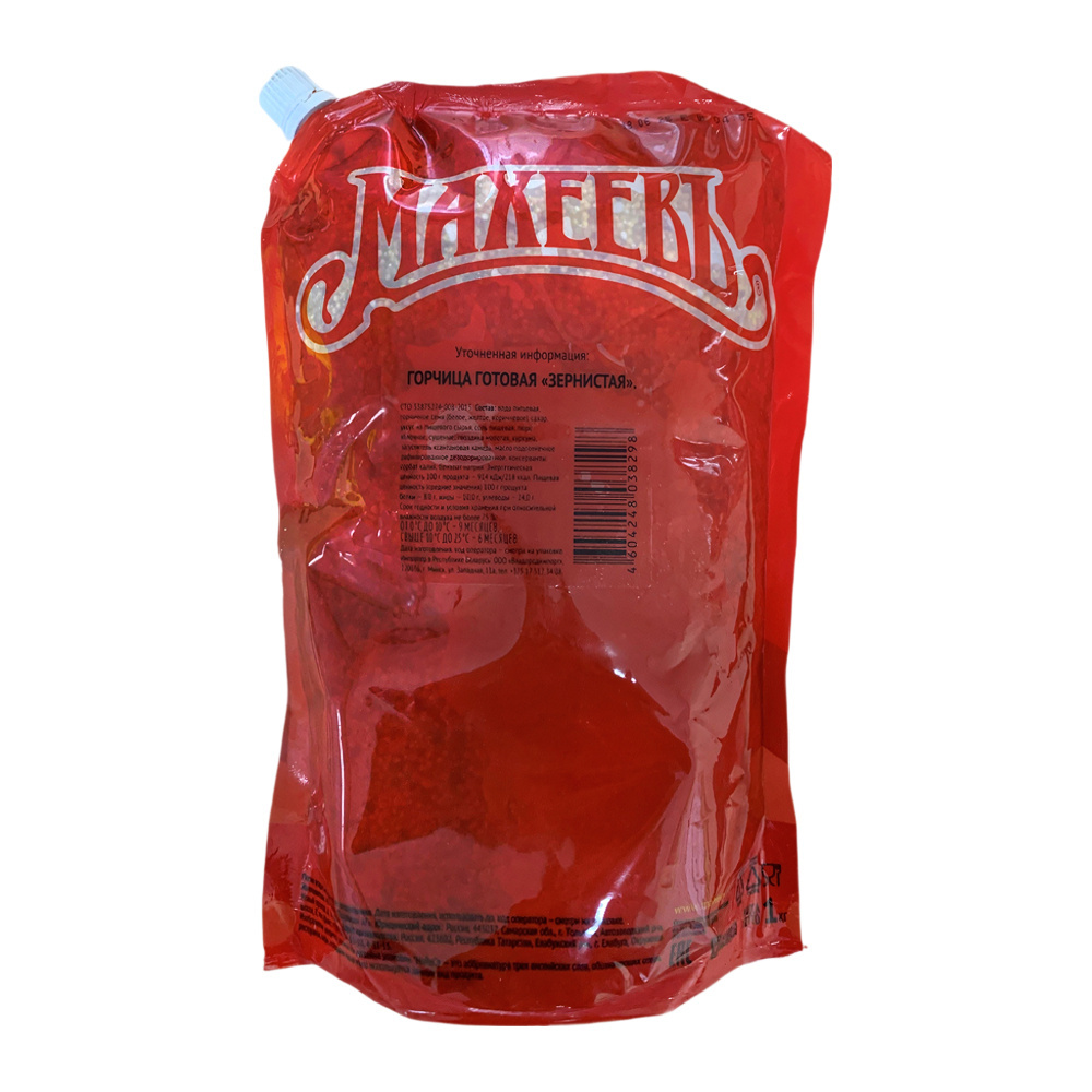 Зернистая горчица Махеевъ — пикантная приправа для истинных гурманов. Добавляет яркий вкус и аромат мясным и овощным блюдам. Отлично подходит для приготовления соусов и маринадов. Придаст новый вкус хот-догам, бургерам и хот-кейкам. Удобная упаковка дой-пак 1 кг идеальна для большой семьи или компании.