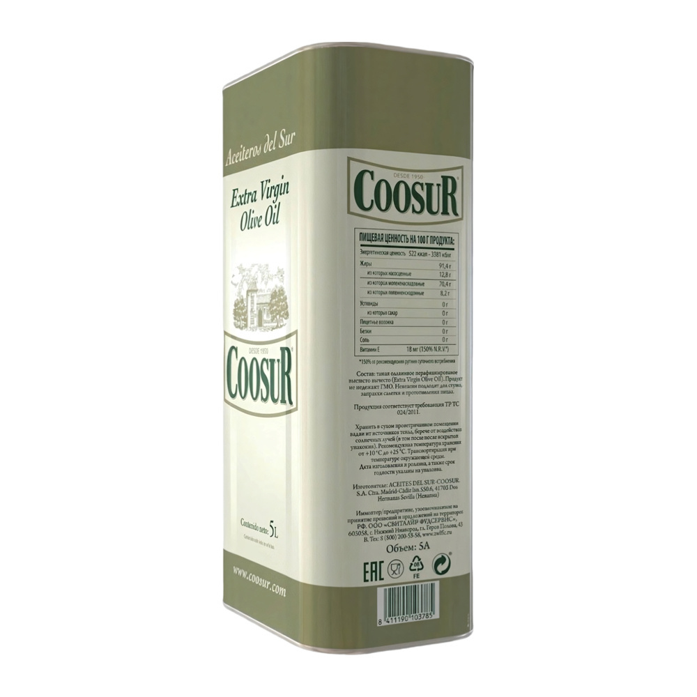 Оливковое масло Coosur Extra Virgin 5л — идеальный выбор для приготовления разнообразных блюд. Оно отличается высоким качеством и насыщенным вкусом. Подходит для заправки салатов, жарки и запекания. Благодаря большому объёму масло удобно использовать для ежедневного приготовления пищи.