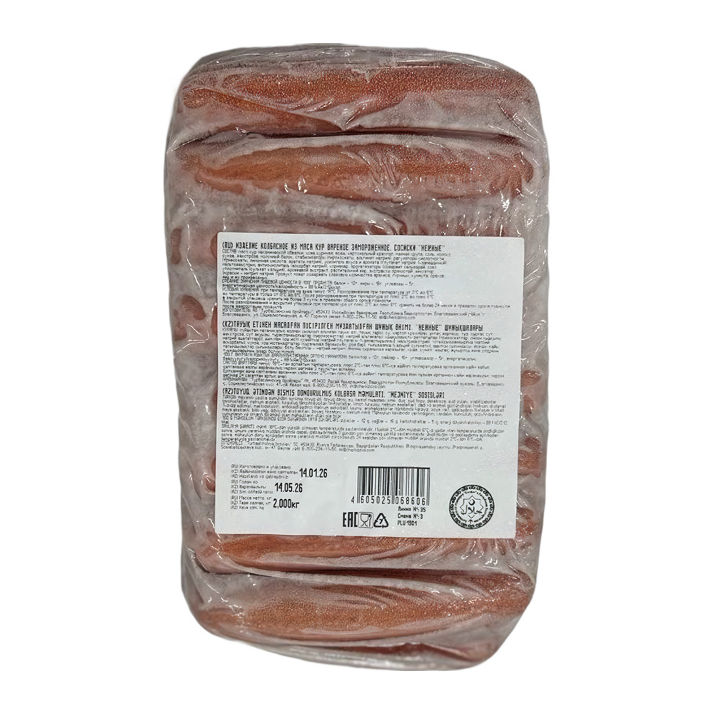 Сосиски Черкизово Куриные Нежные Халяль Замороженные 2кг