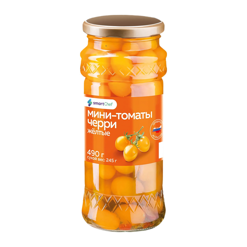 Томаты Мини Черри Smart Chef Желтые 490г Сухой Вес 245г Стекло