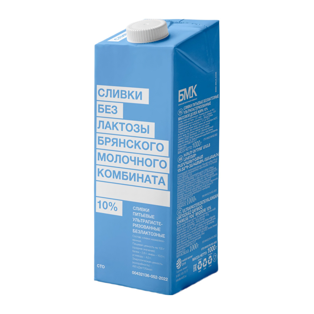 Сливки БМК Ультрапастеризованные Безлактозные 10% 1кг
