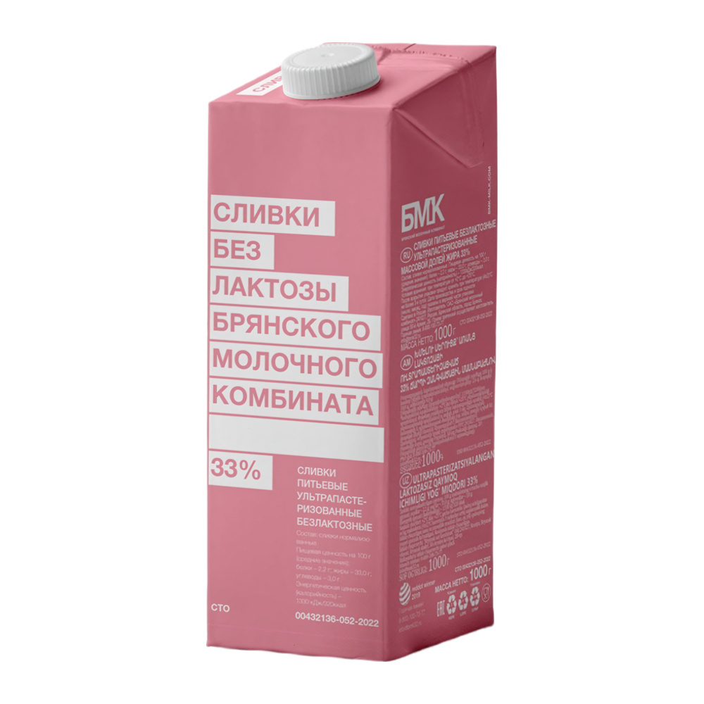 Сливки БМК Ультрапастеризованные Безлактозные 33% 1кг