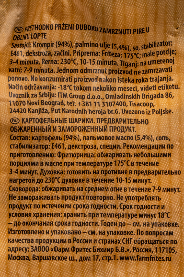 Картофельные шарики Farm Frites — это универсальный и удобный продукт, который станет отличным выбором для приготовления вторых блюд. Они идеально подойдут для жарки во фритюре, запекания или добавления в салаты. Благодаря своей форме и текстуре, они придадут вашим блюдам неповторимый вкус и хрустящую корочку.