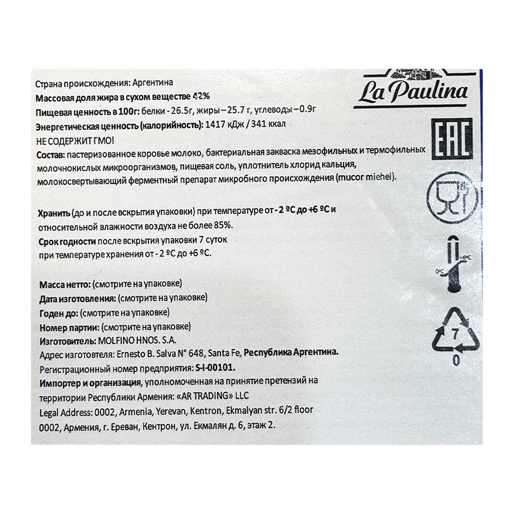 Моцарелла La Paulina 42% — идеальный выбор для приготовления блюд в ресторанах и кафе. Этот сыр отлично плавится и сохраняет нежный вкус, что делает его идеальным ингредиентом для пиццы, лазаньи и других горячих блюд. Подходит для кулинарных шедевров, где требуется моцарелла высокого качества.