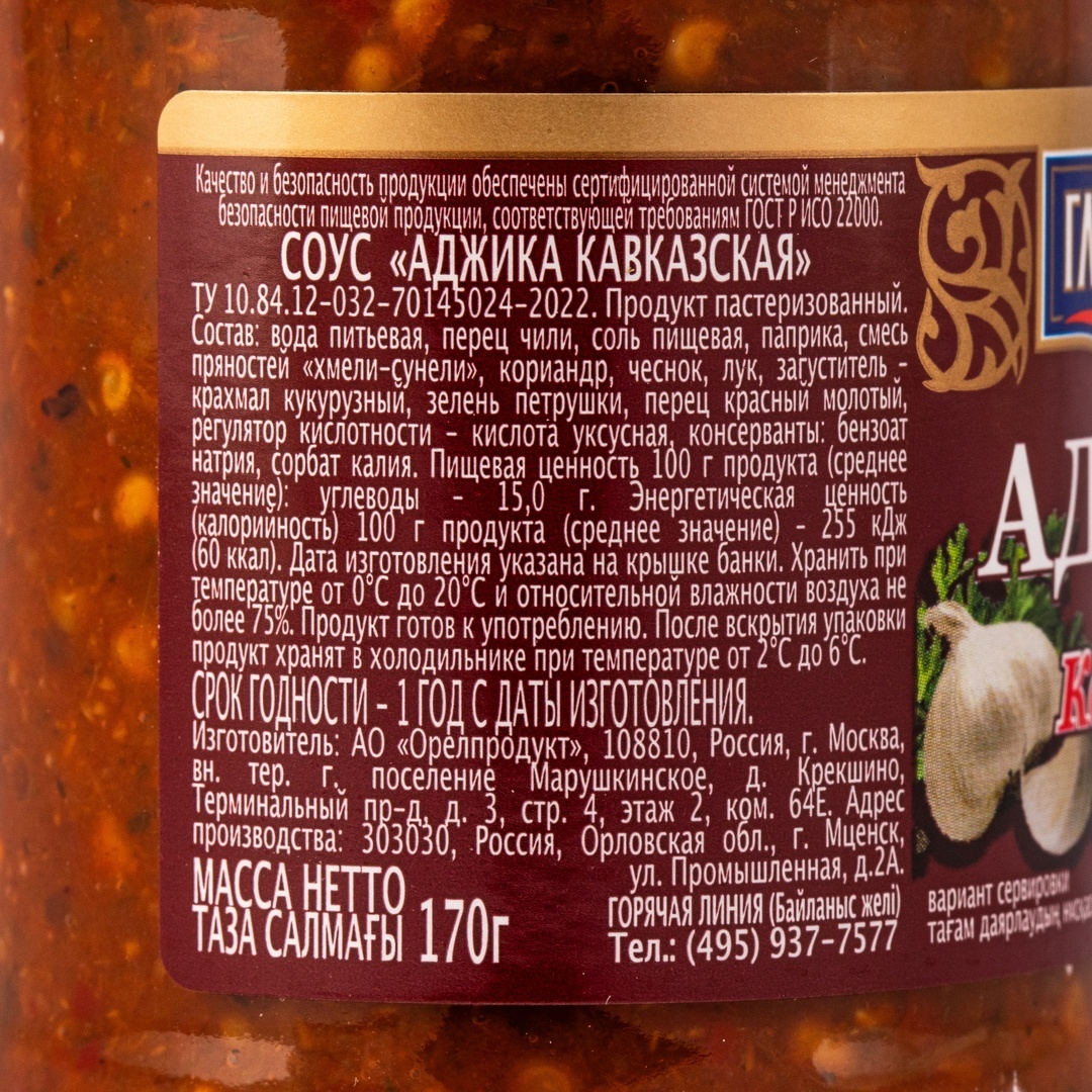 Острый соус Главпродукт кавказская аджика — для тех, кто любит яркий вкус. Подходит для мясных и овощных блюд, делает их насыщенными и пикантными. Отлично сочетается с шашлыком, пловом или горячими бутербродами. Удобная стеклянная упаковка позволяет хранить продукт длительное время.