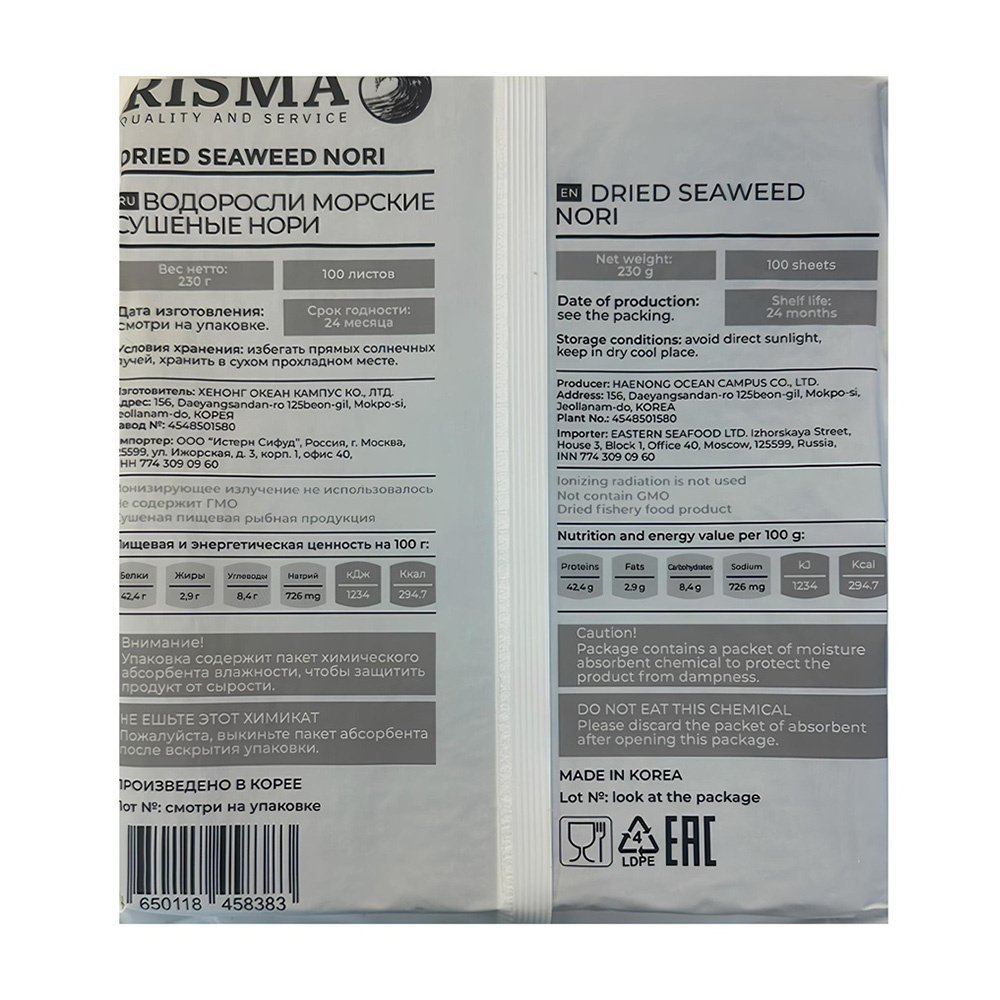 Идеальны для приготовления суши и роллов. Сушёные нори Risma — это качественный продукт, который добавит вашим блюдам характерный морской вкус и аромат. Листы нори легко заворачивать, они не теряют своей текстуры и вкуса при приготовлении. Отличный выбор для любителей японской кухни!