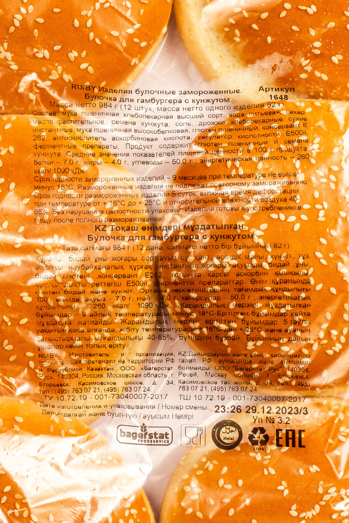 Та самая булочка, которую знают и любят все любители бургеров. Знакомый с детства вкус для поклонников классики. Под котлету размером 12 см, диаметр булочки 125 мм.