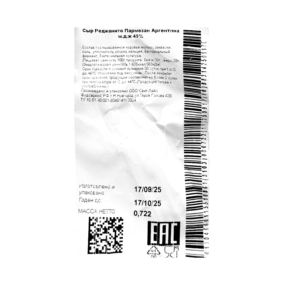Сыр La Paulina Реджанито Пармезан Аргентина 45% 7,5кг
