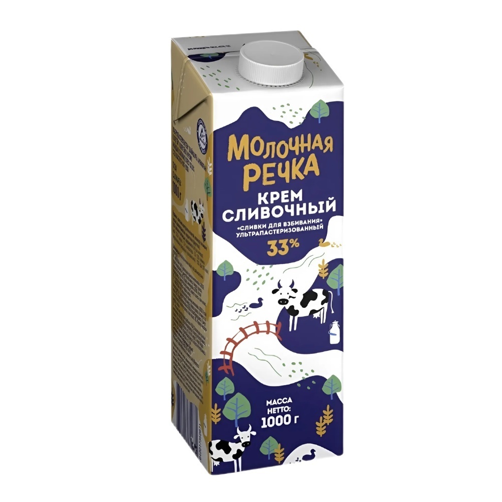 Крем Сливочный Молочная Речка Сливки для Взбивания 33% 1л