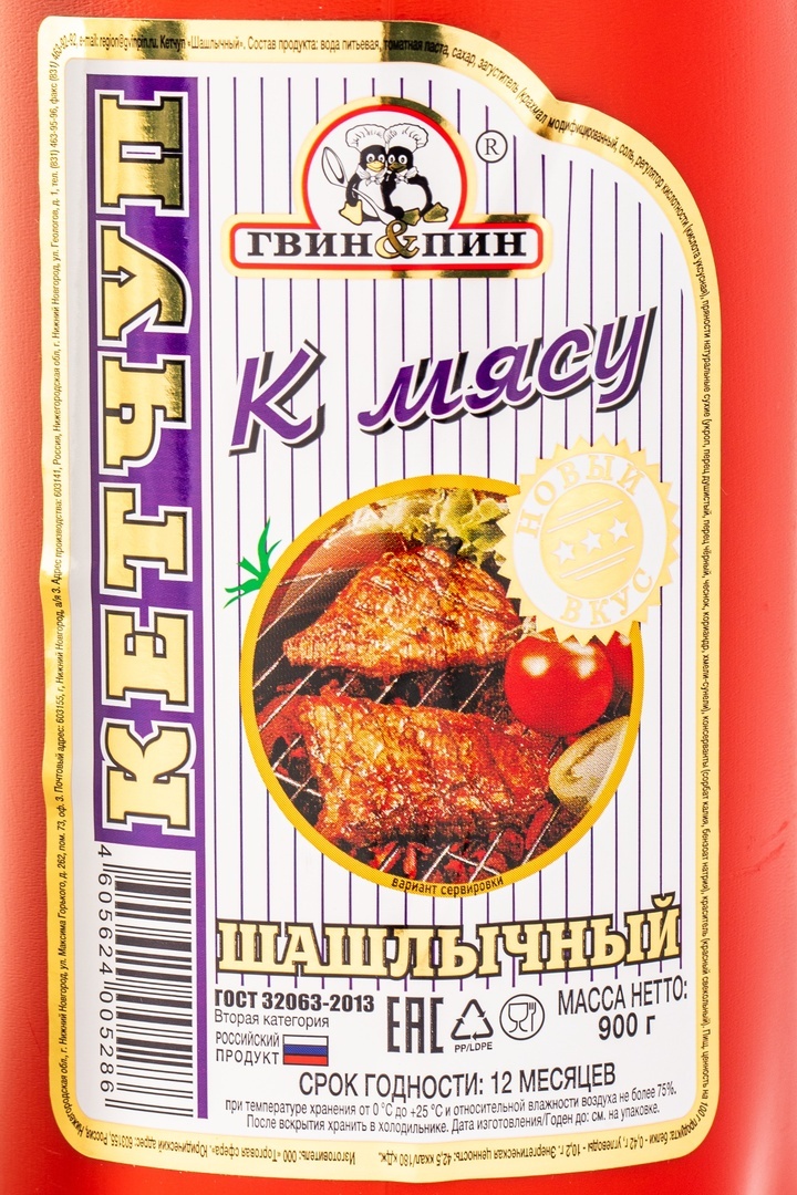 Кетчуп Гвин Пин шашлычный — отличный выбор для любителей пикантных вкусов. Он придаст блюдам насыщенный вкус и аромат. Подходит для мясных блюд, шашлыка, горячих бутербродов. Можно использовать как соус для гриля или добавлять в маринады. Удобная упаковка 900г позволит наслаждаться любимым вкусом долгое время.