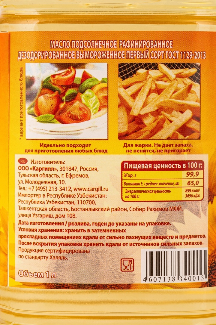 Преимущества подсолнечных масел, производимых компанией «Каргилл» - высокое и стабильное качество каждой партии - подходит для приготовления различных блюд и салатов - подходит для жарки Масло SUNNY GOLD помогает создать теплую атмосферу, основой которой служит вкусная и полезная еда, обеспечивает сохранность естественных вкусов и ароматов блюд. SUNNY GOLD широко известен среди шеф поваров ресторанов. Производится из высококачественного российского сырья. Масло производства «Каргилл» - это натуральное растительное масло высокого качества. Благодаря современному оборудованию и передовым технологиям производства, сохраняет в себе витамины и полезные вещества, необходимые организму человека для здоровой жизни. Масло «Каргилл» производится в России, из высококачественного российского сырья.