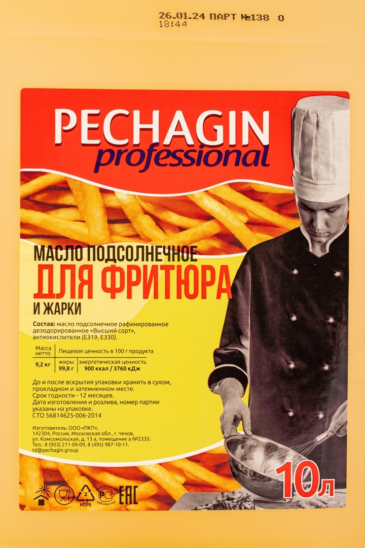 Идеально для жарки и приготовления во фритюре — масло Pechagin Professional. Подходит для использования на профессиональной кухне и в домашних условиях. С ним вы сможете приготовить золотистые пирожки, нежные пончики и хрустящий картофель фри. Объём 10 литров обеспечит длительное использование.