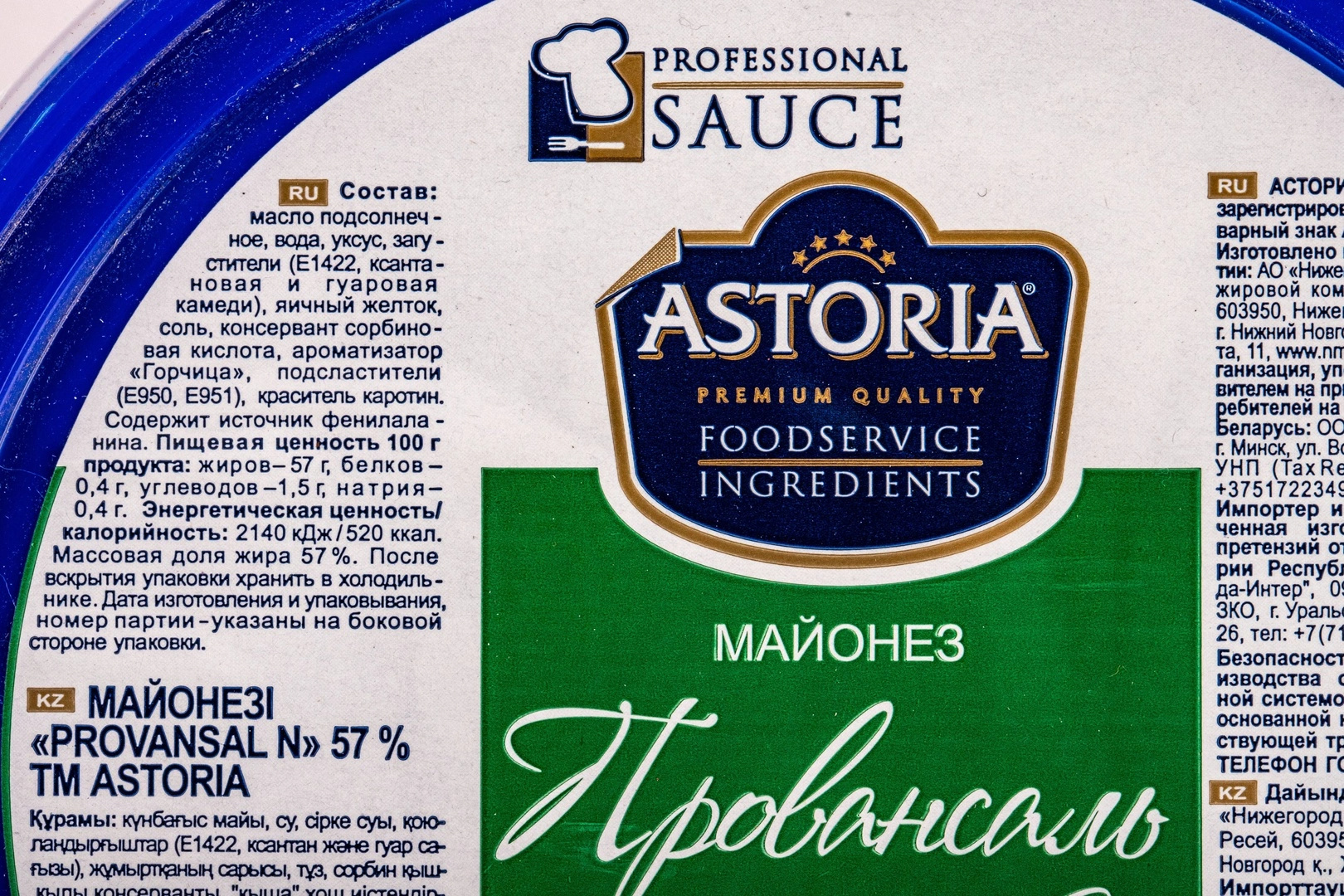 Ищете идеальный соус для салатов и не только? Попробуйте майонез Astoria Провансаль Н с жирностью 57% и весом 900г. Он добавит блюдам насыщенный вкус и станет отличным дополнением к салатам, горячим закускам и холодным блюдам. Этот майонез подойдёт для ежедневного использования и пригодится на любой кухне.