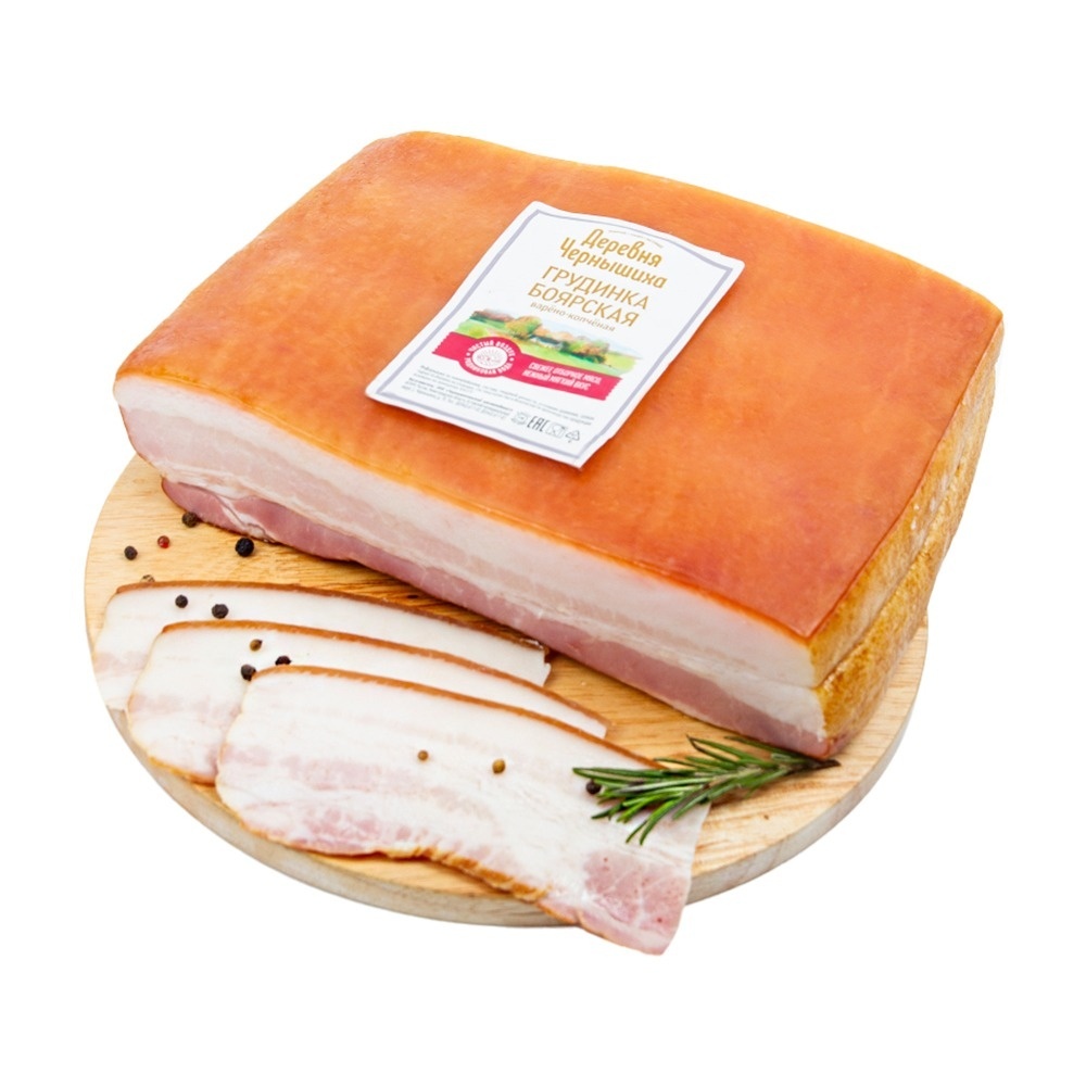 Ищете вкусный мясной деликатес для праздничного стола или повседневного перекуса? Варёно-копчёная грудинка Боярская деревня Чернышиха — идеальный выбор. Она придаст особый аромат и насыщенный вкус салатам, горячим блюдам и закускам. Насладитесь неповторимым вкусом и ароматом этого деликатеса!
