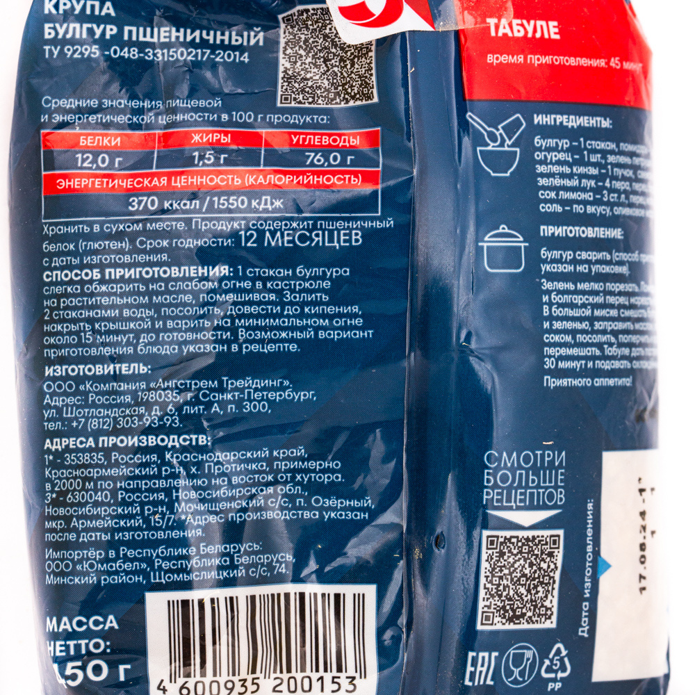 Отличный выбор для приготовления разнообразных и полезных блюд — булгур в варочных пакетах. Он идеально подходит для салатов, плова, гарниров к мясным и овощным блюдам. Удобная упаковка позволяет быстро и легко приготовить крупу, сохранив все её полезные свойства.