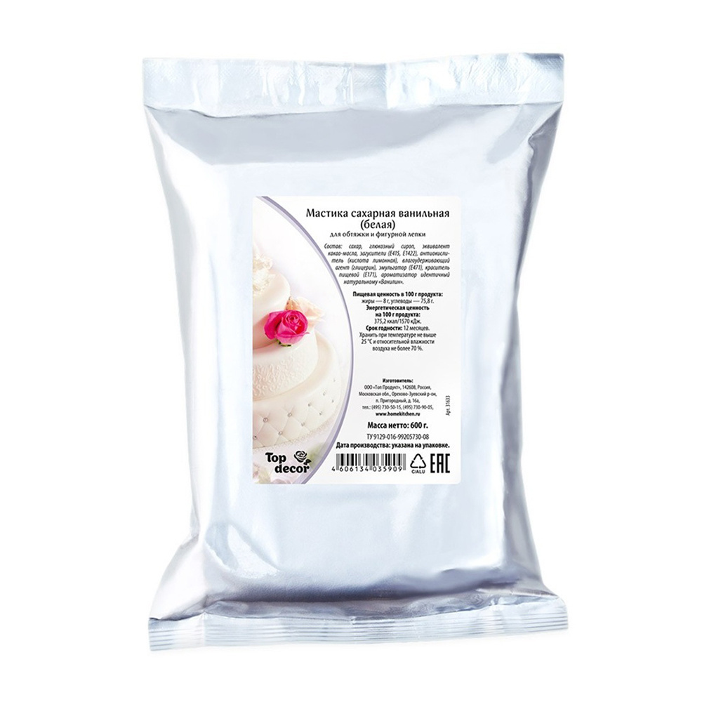 Мастика Top Decor Сахарная Ванильная Белая для Обтяжки и Фигурной Лепки 600г
