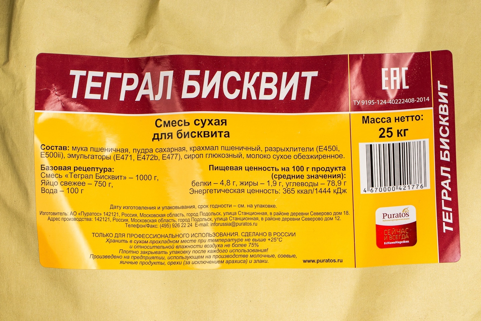 Смесь для Бисквитов Теграл Бисквит Пуратос 25кг