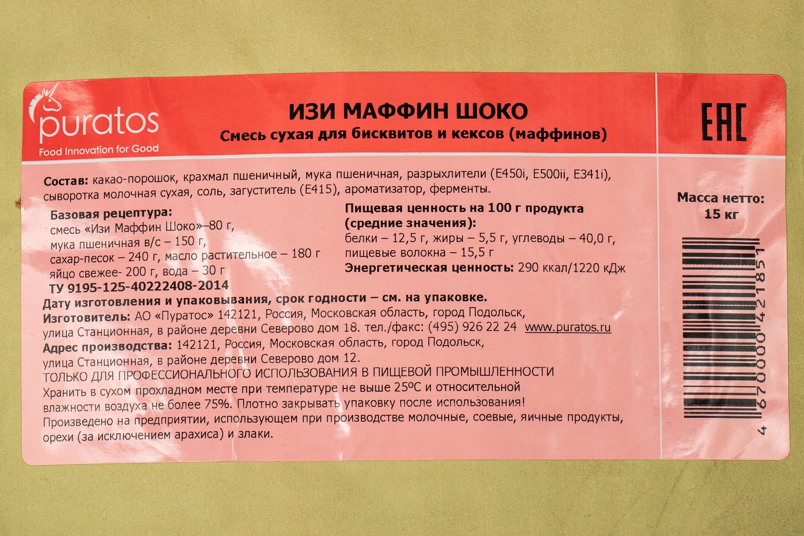Смесь Сухая для Кексов Изи Маффин Шоко Пуратос 15кг