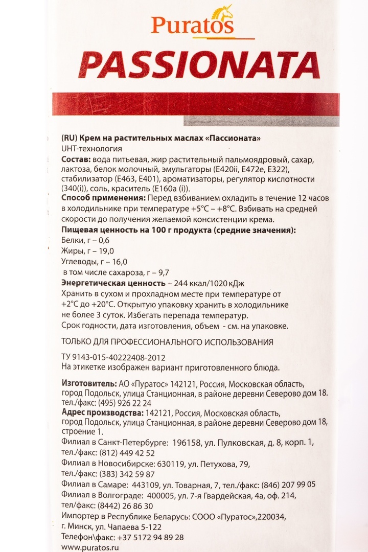 Крем на Растительных Маслах Пассионата Пуратос 1л