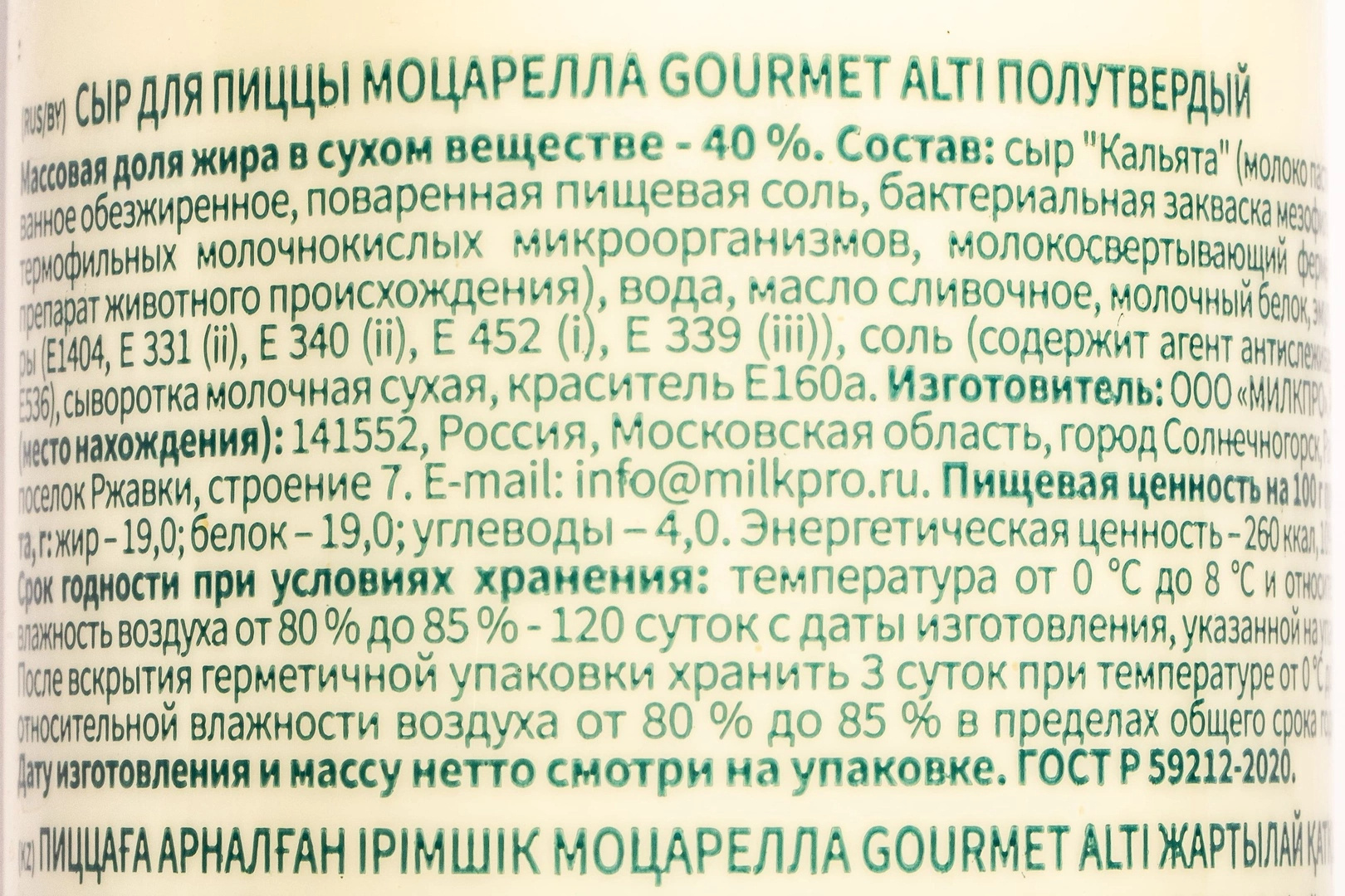 Идеальный выбор для приготовления пиццы — мягкий и нежный сыр, который тянется и создаёт аппетитный вид блюда. Подходит для запекания в сочетании с томатами, базиликом и другими ингредиентами. Прекрасно дополнит салаты и горячие блюда, придавая им характерный сливочный вкус.