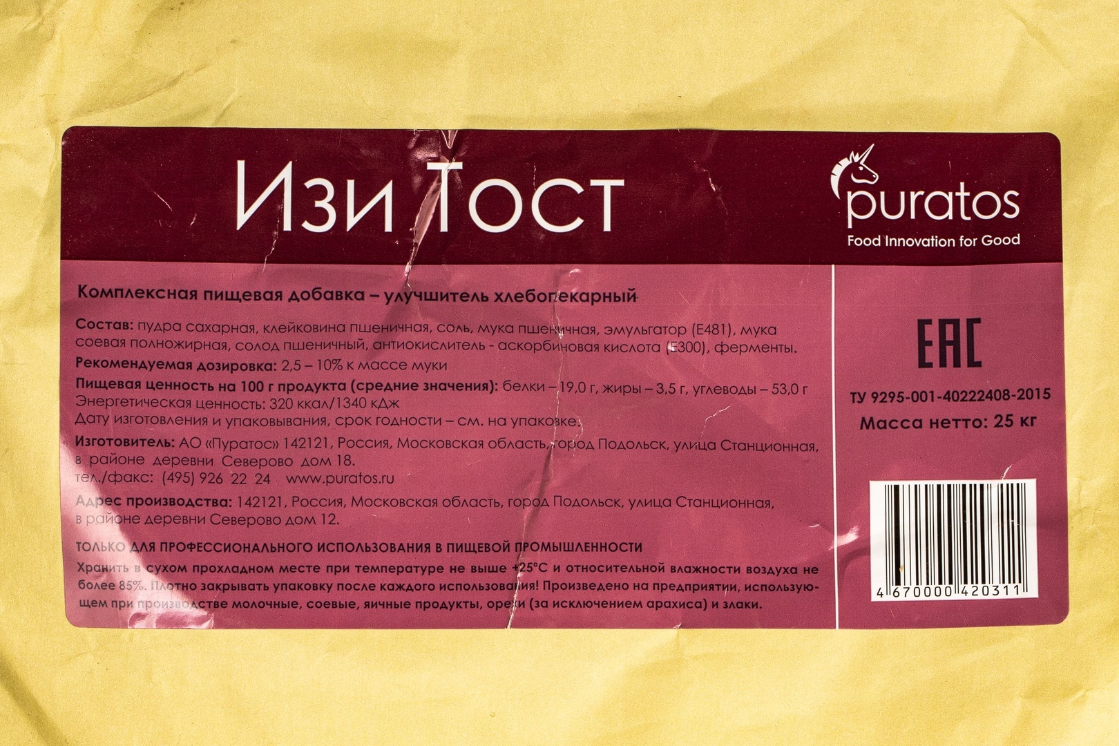 Смесь для Тостового Хлеба Изи Тост Пуратос 25кг
