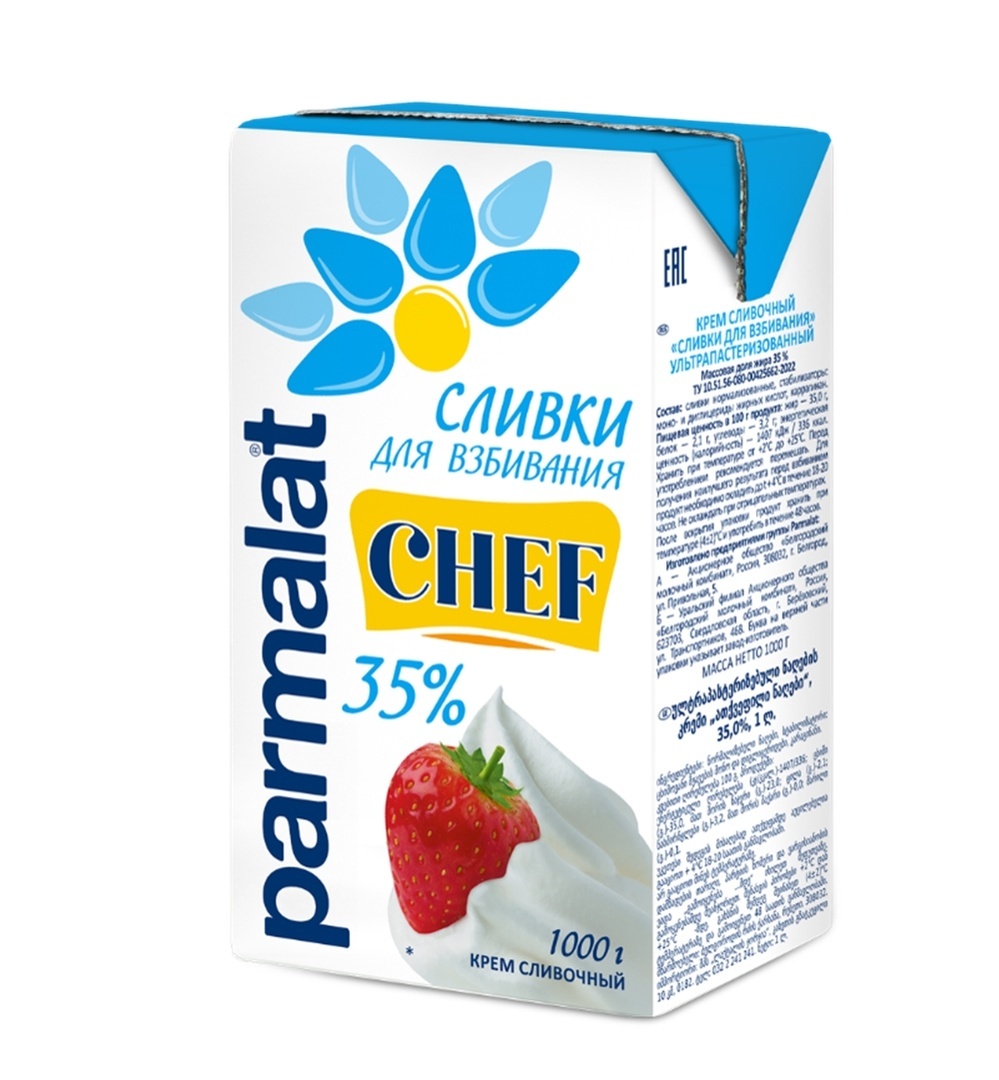 Сливки под маркой ПАРМАЛАТ изготавливаются по традиционной итальянской рецептуре. Сливки для взбивания 35% жирности легко взбиваютя и прекрасно держат форму