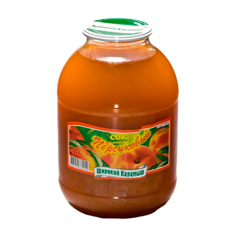 Попробуйте персиковый сок Широкий Карамыш в стеклянной бутылке объёмом 3 литра. Он станет отличным дополнением к десертам, а также может использоваться как основа для соусов и маринадов. Этот сок подарит вам насыщенный вкус и аромат спелых персиков.