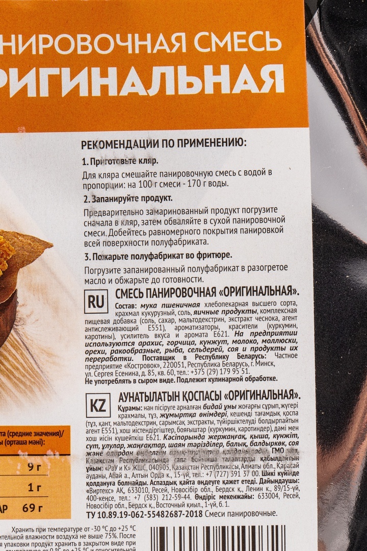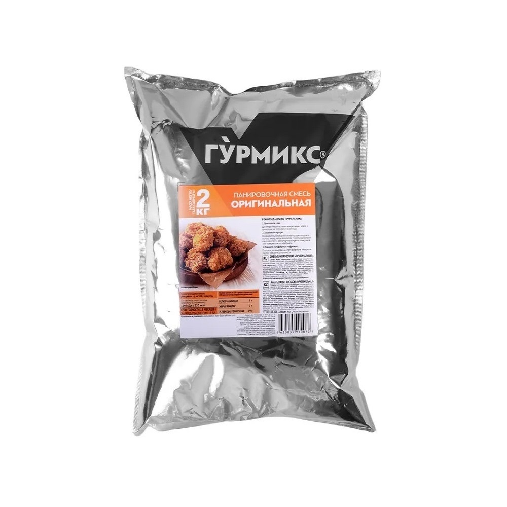 Панировочная смесь Гурмикс "Оригинальная" - продукт, предназначенный для панировки кулинарных изделий при обжарке или запекании. Продукт становится лучше в соединении с хрупкой и хрустящей текстурой панировки, что делает его более вкусным. Панировочная смесь сочетается с рыбой, креветками, курицей, мясом, овощами и т.д.