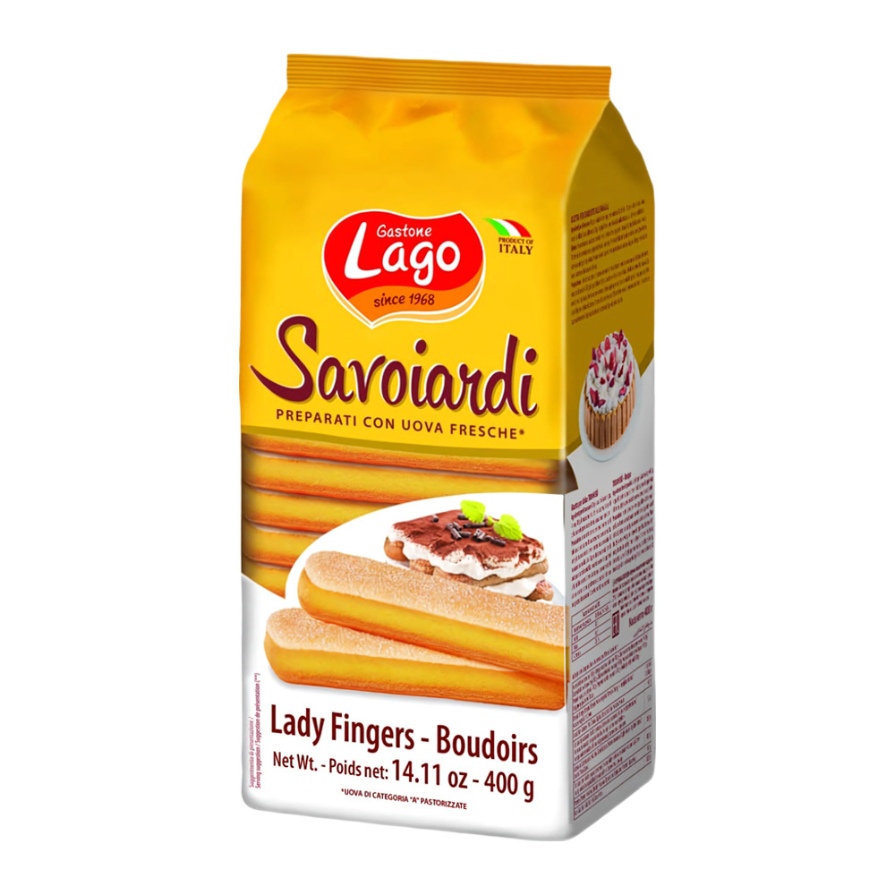 Нежное печенье Lago Савоярди — идеальный выбор для чаепития и приготовления десертов. Оно отличается воздушным и рассыпчатым вкусом. Используйте его для создания тирамису или других лакомств, а также просто наслаждайтесь с горячим чаем.